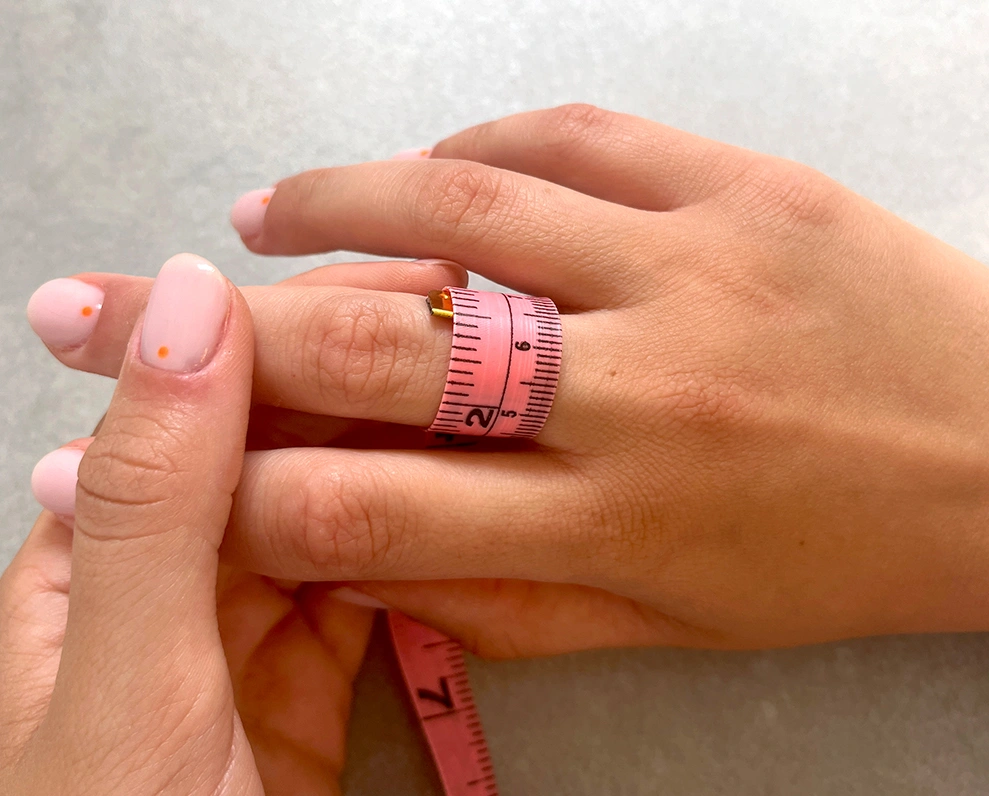 2. Miss den Umfang deines Fingers (denk daran, nicht zu fest anzuziehen).