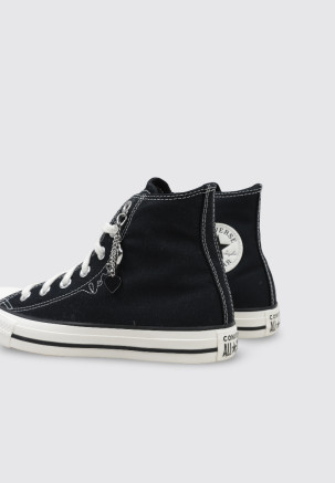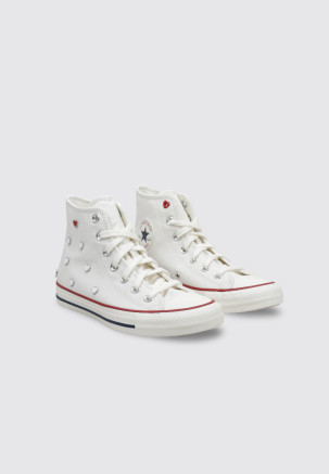 Das Gleiche gilt für die gewagteren Modelle wie die Converse mit Nieten. Kombiniere du sie mit einem Biker und verleihe du deinem Look einen coolen Vibe, die Möglichkeiten mit Converse sind endlos.