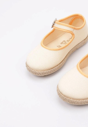 Die FLACHE ESPADRILLES ARECA der Marke KRACK KIDS, in der Farbe Beige, zeichnen sich durch ihr leichtes und atmungsaktives Design aus. Sie sind für Mädchen gedacht und aus textil gefertigt, einem Material, das an warmen Tagen für Frische sorgt. Ihre Espadrillensohle und ihr zeitloses Design machen sie zur idealen Wahl für lässige und sommerliche Looks.