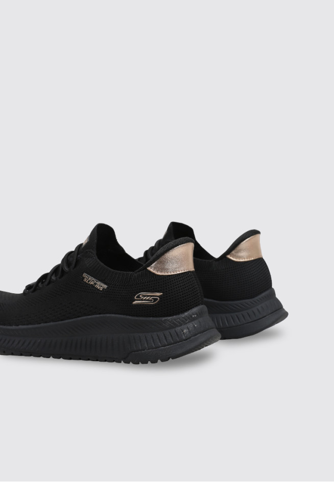 Das Modell SLIP-INS: BOBS SQUAD 4 der Marke SKECHERS, in der Farbe Schwarz, ist für Leistung und Komfort bei jeder Bewegung konzipiert. Diese SNEAKER FLACH NIEDRIG sind für Damen gedacht und bestehen aus textil, was ihnen Leichtigkeit und Flexibilität verleiht.