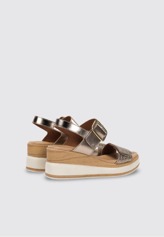 Las SANDALIAS DE CUÑA D9642-GV de la marca DORKING, en color Dorado, son el aliado perfecto para los días de sol. Confeccionadas en otros materiales, destacan por su diseño ligero y fresco, ideal para Mujer. Su versatilidad permite combinarlas con cualquier look, adaptándose con estilo a cada ocasión.