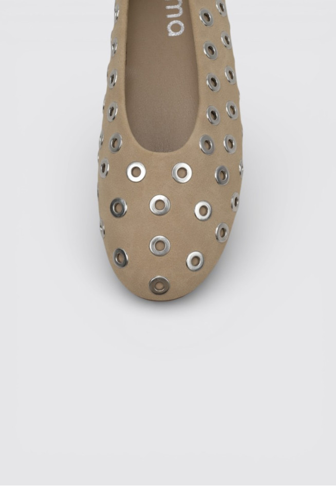 Las BAILARINAS de la marca LIMMA en color Beige presentan un diseño de corte bajo que deja el empeine descubierto, ofreciendo una estética clásica y atemporal. El modelo CHOIQUE incorpora una suela de perfil delgado y una puntera redondeada, características habituales en este tipo de calzado. Confeccionadas en otros materiales y diseñadas para Mujer, son una opción versátil que puede combinarse fácilmente con distintos estilos y ocasiones