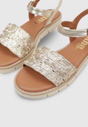 Las SANDALIAS PLANAS 56611 de la marca MTNG, en color Dorado, son el aliado perfecto para los días de sol. Confeccionadas en otros materiales, destacan por su diseño ligero y fresco, ideal para Mujer. Su versatilidad permite combinarlas con cualquier look, adaptándose con estilo a cada ocasión.