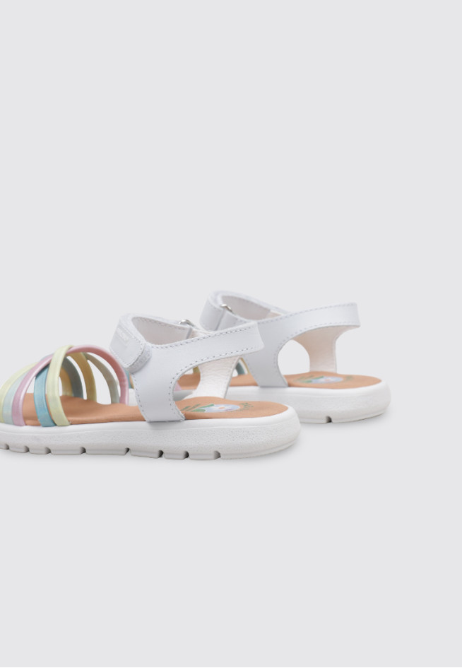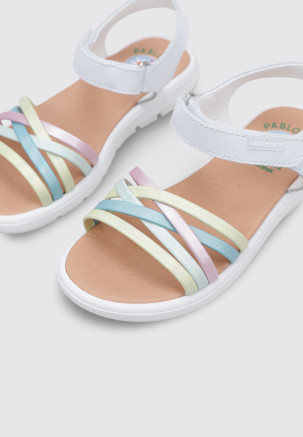 Las SANDALIAS PLANAS 442100 de la marca PABLOSKY, en color Blanco, son el aliado perfecto para los días de sol. Confeccionadas en cuero y otros materiales, destacan por su diseño ligero y fresco, ideal para Niña. Su versatilidad permite combinarlas con cualquier look, adaptándose con estilo a cada ocasión.