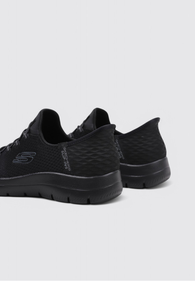 El modelo SLIP-INS: SUMMITS - DREAM de la marca SKECHERS, en color Negro, está diseñado para ofrecer rendimiento y comodidad en cada movimiento. Estas DEPORTIVAS PLANAS BAJA están pensadas para Mujer, con un material textil que aporta ligereza y flexibilidad.