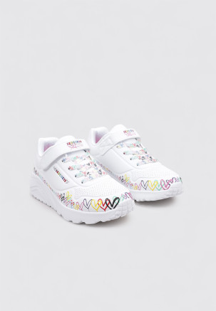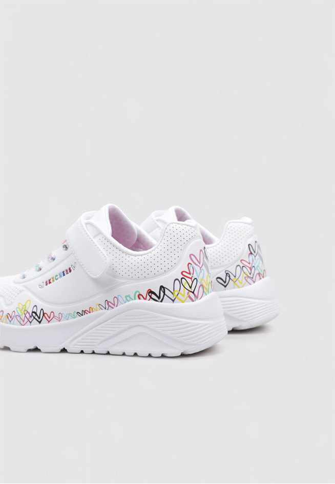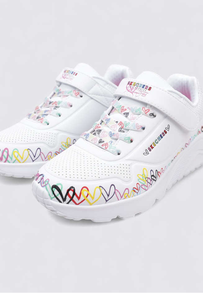 El modelo UNO LITE - HEART CRAZE de la marca SKECHERS, en color Blanco, está diseñado para ofrecer rendimiento y comodidad en cada movimiento. Estas DEPORTIVAS PLANAS BAJA están pensadas para Niña, con un material otros materiales que aporta ligereza y flexibilidad.
