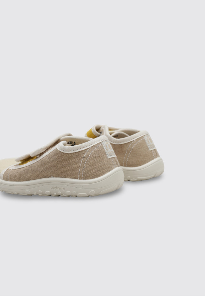 Las DEPORTIVAS CON VELCRO de la marca VICTORIA en color Beige presentan un diseño de corte bajo que deja el empeine descubierto, ofreciendo una estética clásica y atemporal. El modelo BOSCO BAREFOOT BASKET incorpora una suela de perfil delgado y una puntera redondeada, características habituales en este tipo de calzado. Confeccionadas en textil y diseñadas para Bebé - niño (hasta la talla 30), son una opción versátil que puede combinarse fácilmente con distintos estilos y ocasiones