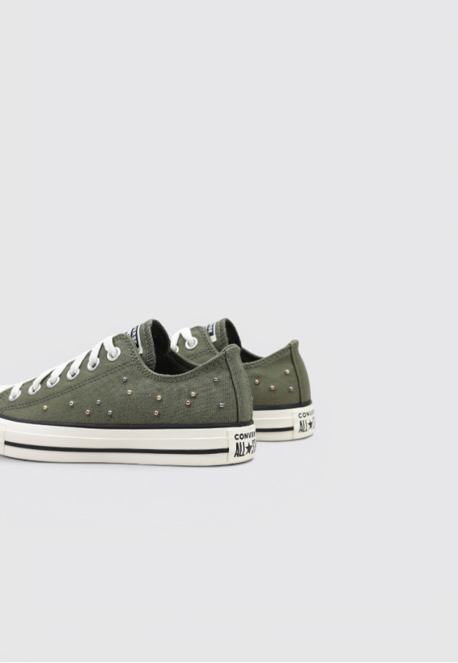 Le modèle MINI STUDS de la marque CONVERSE, en couleur Vert, est conçu pour offrir performance et confort à chaque mouvement. Ces BASKETS BASSES BASSE Femme, avec un matériau textile qui leur confère légèreté et flexibilité.
