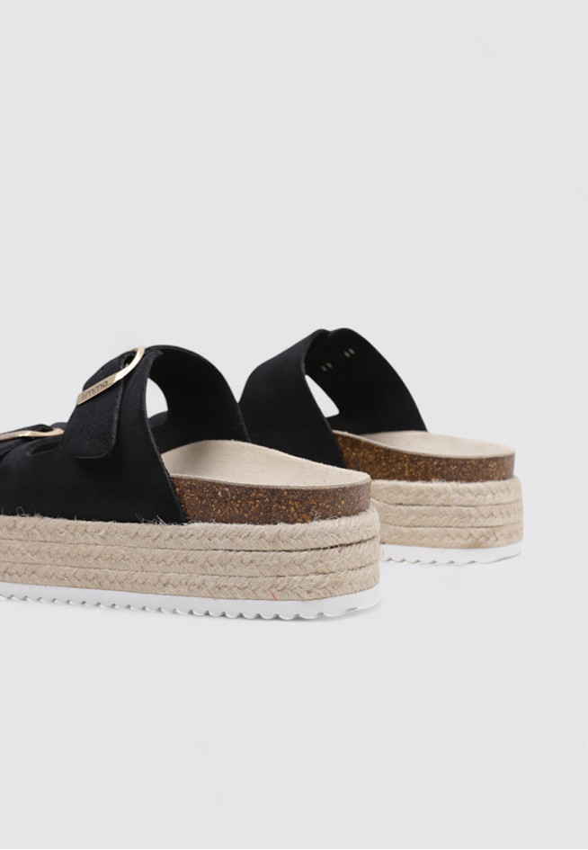 Les ESPADRILLES À PLATEFORME PALMARO de la marque LIMMA, au style BIOS, en couleur Noir, sont le choix idéal pour ceux qui recherchent des chaussures légères et respirantes. Conçues pour Femme, elles sont fabriquées en cuir, un matériau qui favorise la respirabilité lors des journées chaudes. Leur design polyvalent et leur style BIOS en font un incontournable pour des looks décontractés et estivaux.