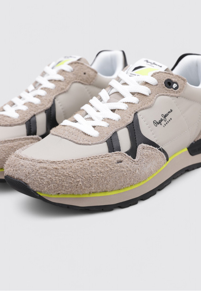Le modèle BRIT FLY M de la marque PEPE JEANS, en couleur Beige, est conçu pour offrir performance et confort à chaque mouvement. Ces BASKETS BASSES BASSE sont destinées à Homme, avec un matériau cuir et textile qui leur confère légèreté et flexibilité.