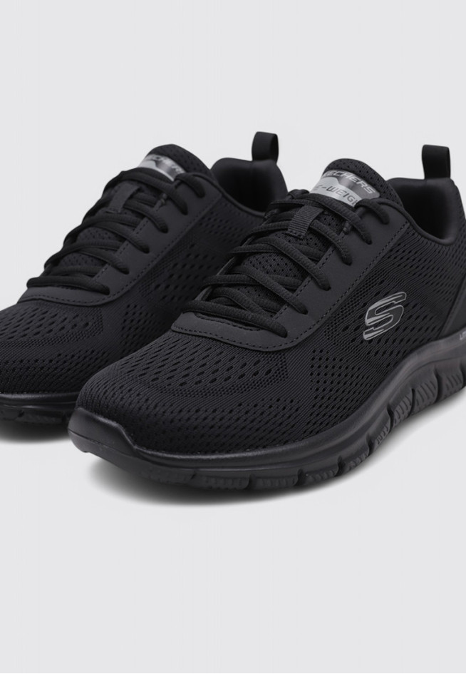 Le modèle TRACK - LESHUR de la marque SKECHERS, en couleur Noir, est conçu pour offrir performance et confort à chaque mouvement. Ces BASKETS BASSES BASSE sont destinées à Homme, avec un matériau textile et autres matériaux qui leur confère légèreté et flexibilité.