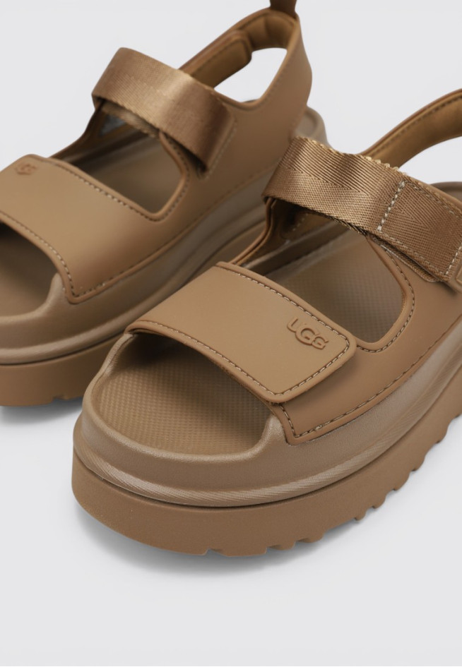 Les SANDALES À PLATEFORME GOLDEN GLOW de la marque UGG, en couleur Cuir, sont l’allié parfait pour les journées ensoleillées. Fabriquées en autres matériaux, elles se distinguent par leur design léger et aéré, idéal pour Femme. Leur polyvalence permet de les associer à n’importe quel look et de s’adapter avec style à chaque occasion.