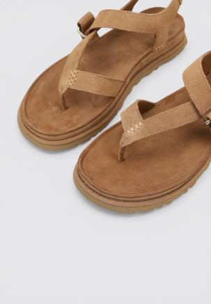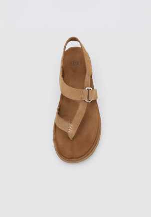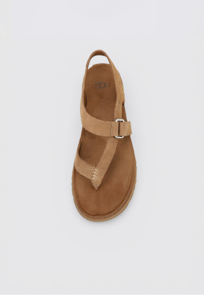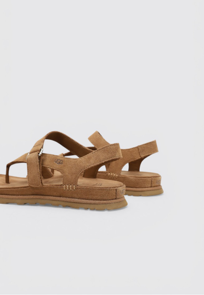 Les SANDALES PLATES GoldenGaze Toe Post de la marque UGG, en couleur Cuir, sont l’allié parfait pour les journées ensoleillées. Fabriquées en nubuck, elles se distinguent par leur design léger et aéré, idéal pour Femme. Leur polyvalence permet de les associer à n’importe quel look et de s’adapter avec style à chaque occasion.