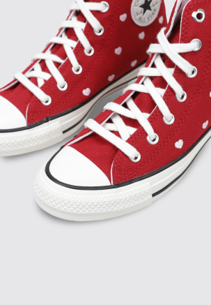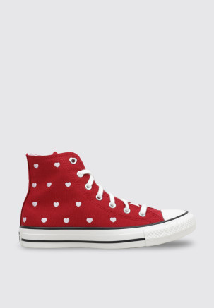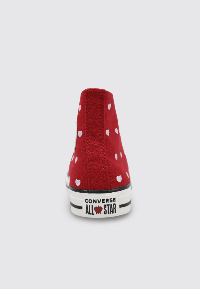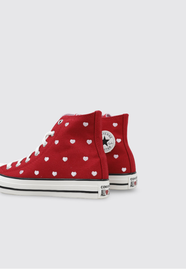 O modelo CHUCK TAYLOR ALL STAR HEARTS & ROSES da marca CONVERSE, na cor Vermelho, foi criado para oferecer desempenho e conforto a cada movimento. Estas TÉNIS RASOS BOTIN são projetadas para Menina, com um material têxtil que proporciona leveza e flexibilidade.