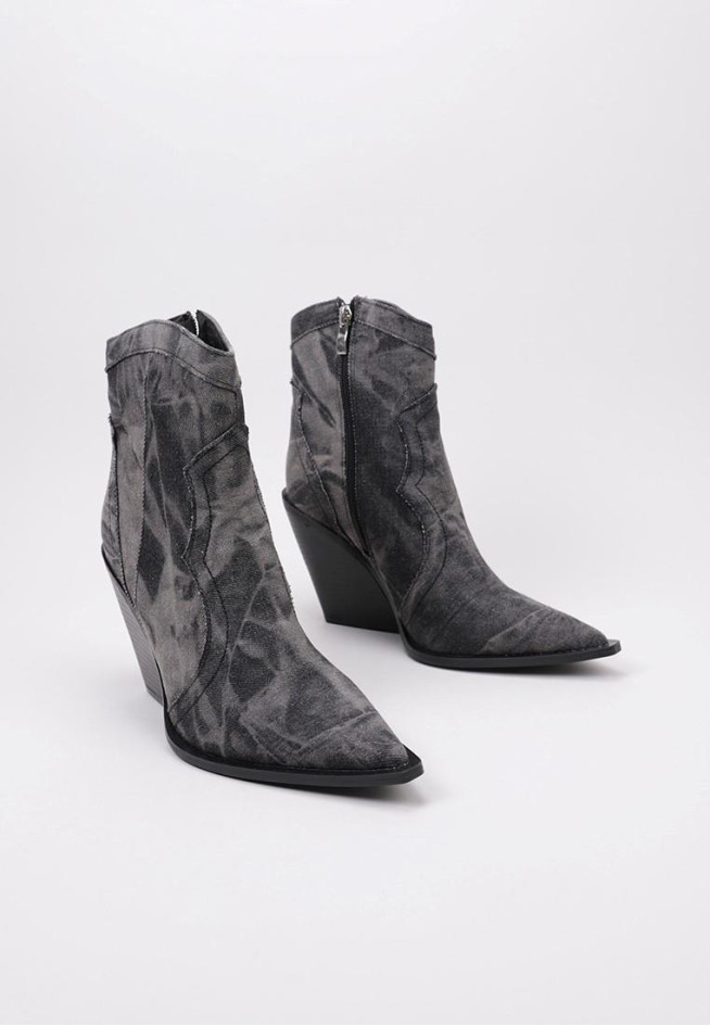 O material denim oferece durabilidade e resistência, o que o torna uma escolha ideal para calçado. Os sapatos vaqueiros vêm numa variedade de estilos, desde botas até tênis, e numa ampla gama de tons de cor denim.
