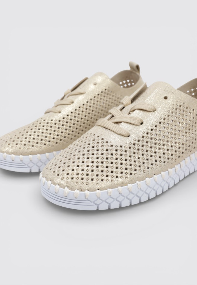 Os SAPATOS RASOS ARGUMENTO da marca LIMMA, na cor Dourado, combinam design e funcionalidade em um único calçado. Projetados para Mulher, sua confecção em outros materiais garante um ajuste preciso e uma pisada leve. Com uma altura de Raso, oferecem o equilíbrio ideal entre estilo e estabilidade, adaptando-se facilmente a diferentes ocasiões.